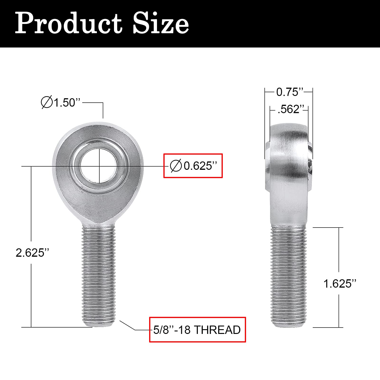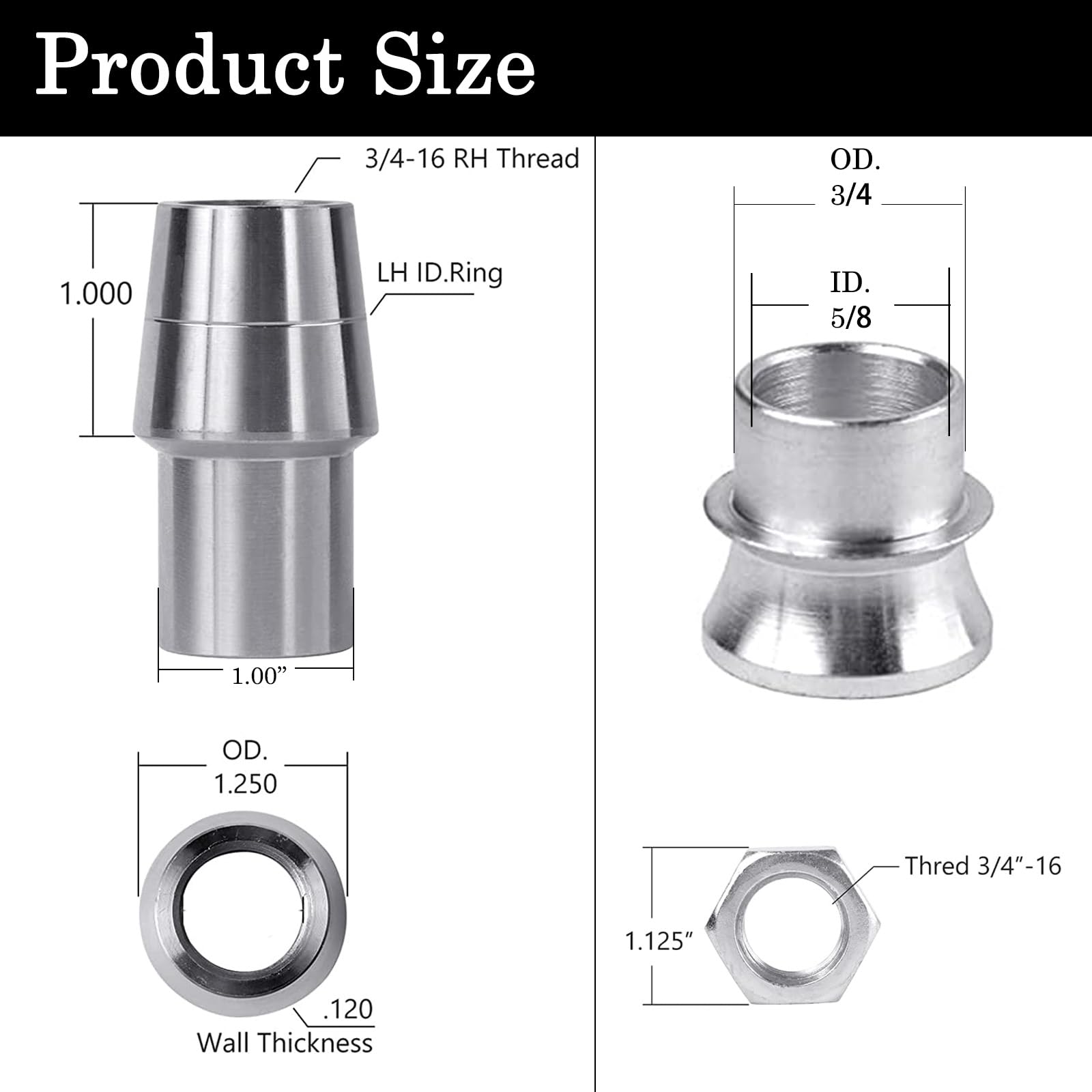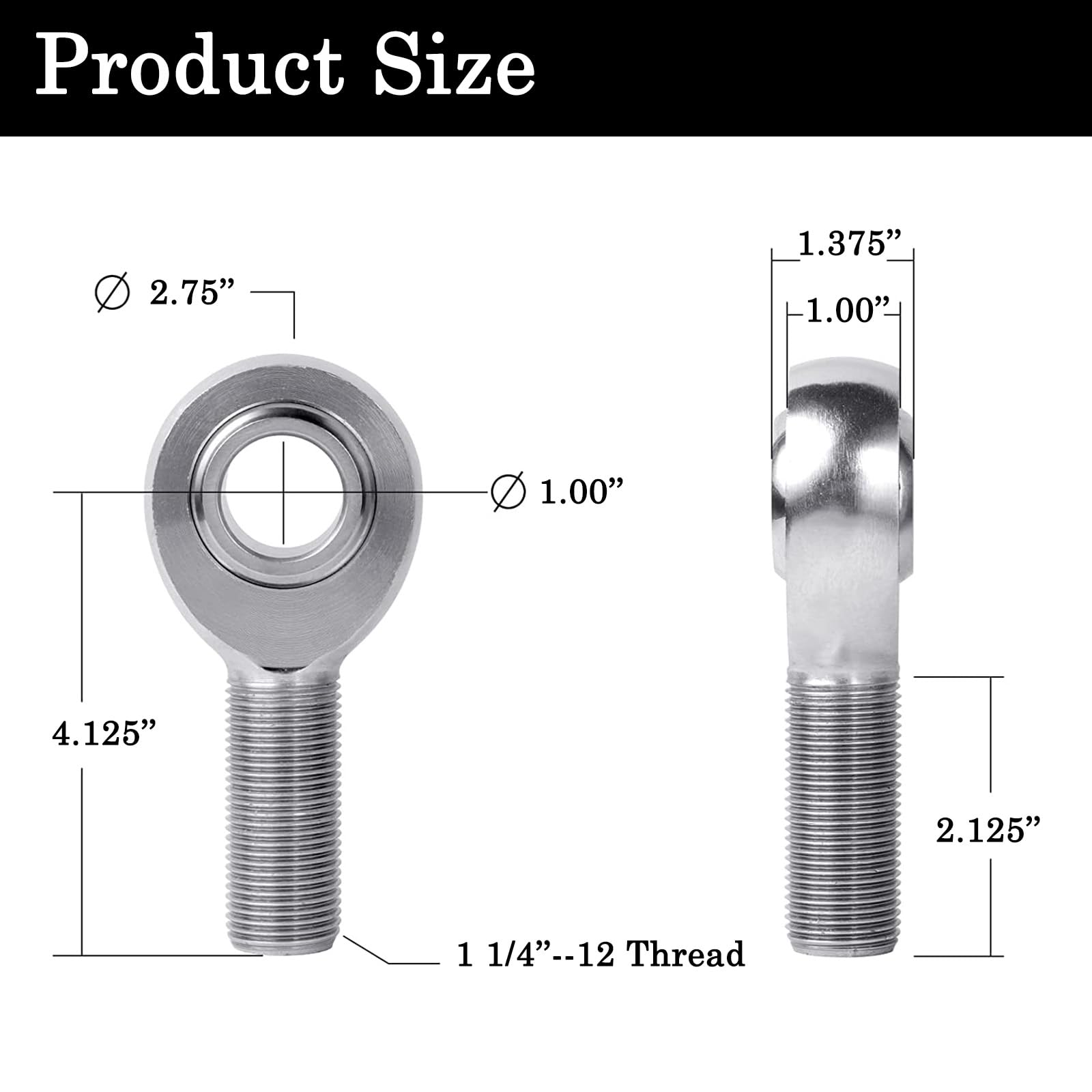 - 【Adaptability】The rod end is with 3/4” shaft with 16tpi. 3/4” bore is the strongest way to make this heim. Fits Tube Size: 1 1/4" OD.x .120" Wall x 1.01"ID. Mounting width is 1-7/8".